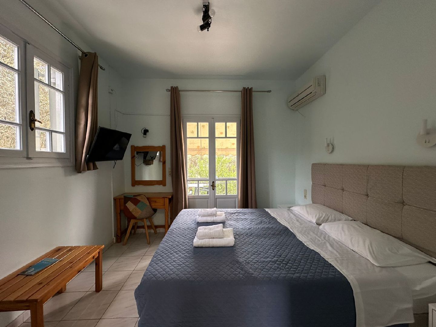 Our rooms have the capacity to accommodate up to four people per room to a very charming environment fully harmonious with the traditions of the island. Equipped with all the modern conveniences like WiFi, satellite TV, Air condition, kitchen and big parking area.