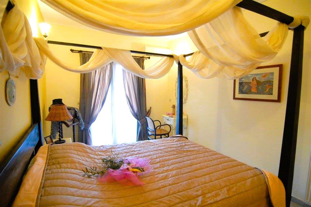 Tiled roofs, vaulted ceilings, stone-paved terraces, fireplaces, and classic furnishings create an authentic, warm, inviting atmosphere throughout. The Mediterranean-style gardens provide a serene outdoor retreat with shaded dining areas, ideal for relaxing or entertaining while enjoying the sea views.